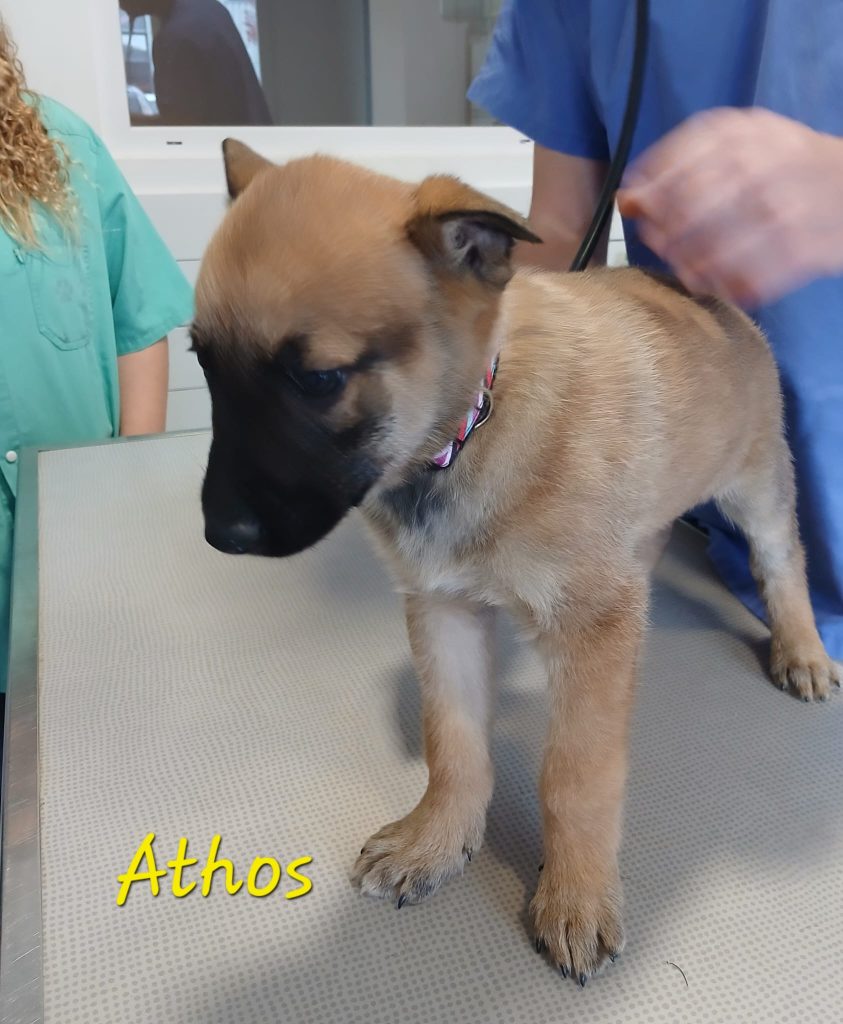 Athos fait partie d’une fratrie de 9 chiots trouvés errants. Nous en avons récupéré 5 au refuge.