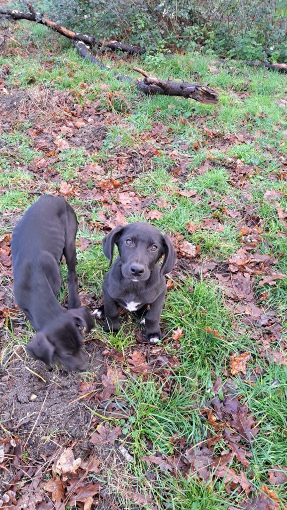 Ils sont très proches des humains et ont pour le moment un peu peur des autres chiens mais ils commencent à se familiariser.